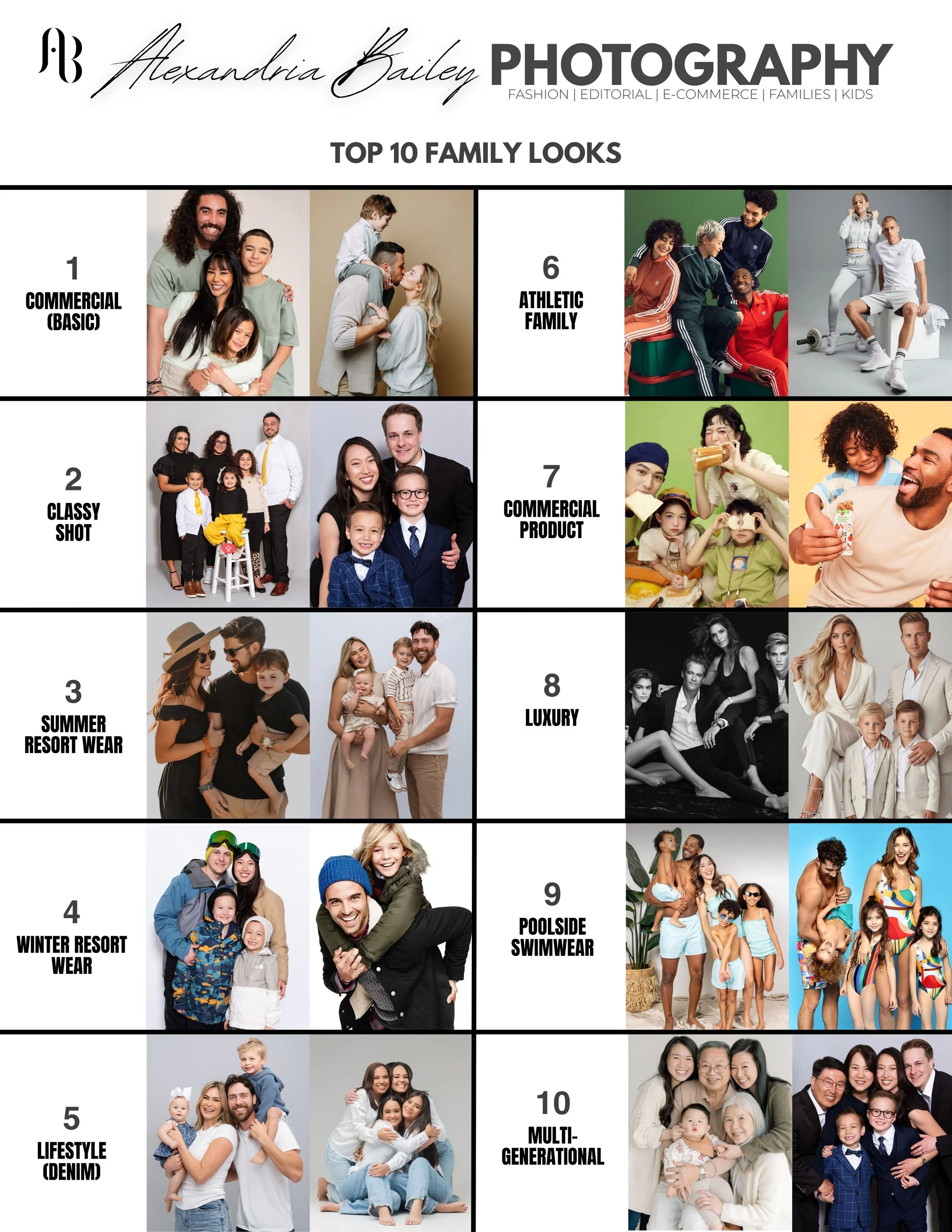 There are 10 main looks for the Families & Couples Division. The following will show examples so you will know what to look for in wardrobe & aesthetic.